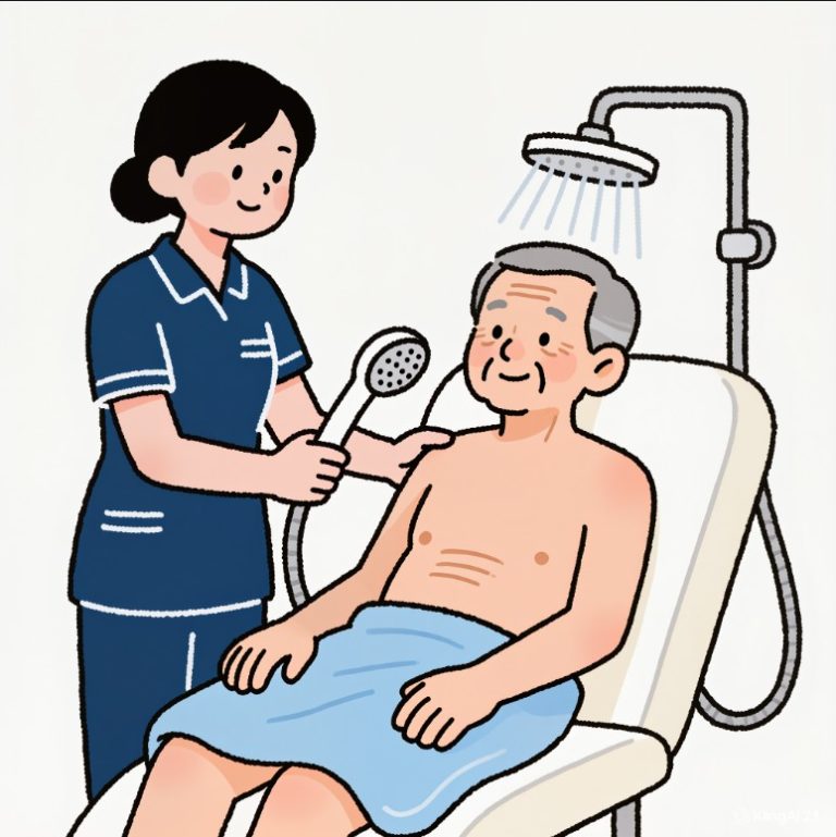 Chăm sóc tắm gội, vệ sinh răng miệng và da đầu tiêu chuẩn y tế, nhẹ nhàng, tôn trọng sự riêng tư.
